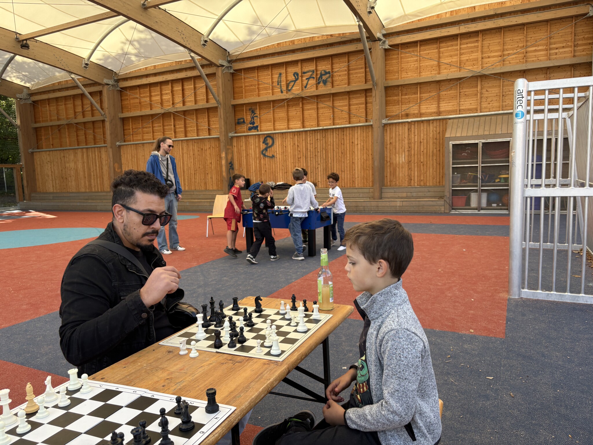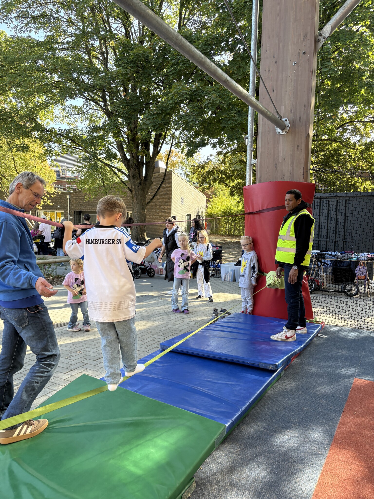 Doch es gab noch viele andere spannende Aktionen am Tag der offenen Tür: Die Feuerwehr, der Flohmarkt, Sport-Mitmach-Angebote in der Offen- und in der Sporthalle, ein Cheerleading Auftritt, Schach und Malen. Auch für das leibliche Wohl wurde gesorgt mit Kuchen in  unserer neuen großen Mensa, Grillwürstchen, Waffeln und Eis.